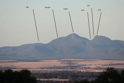 The Goreng-Noongar people love to point out 'the sleeping giant' shape (a woman)...the image on this page is from the opposite side of the ranges, but as you drive along, you might make her out! See the photos in this section of the descriptor to see how she looks!